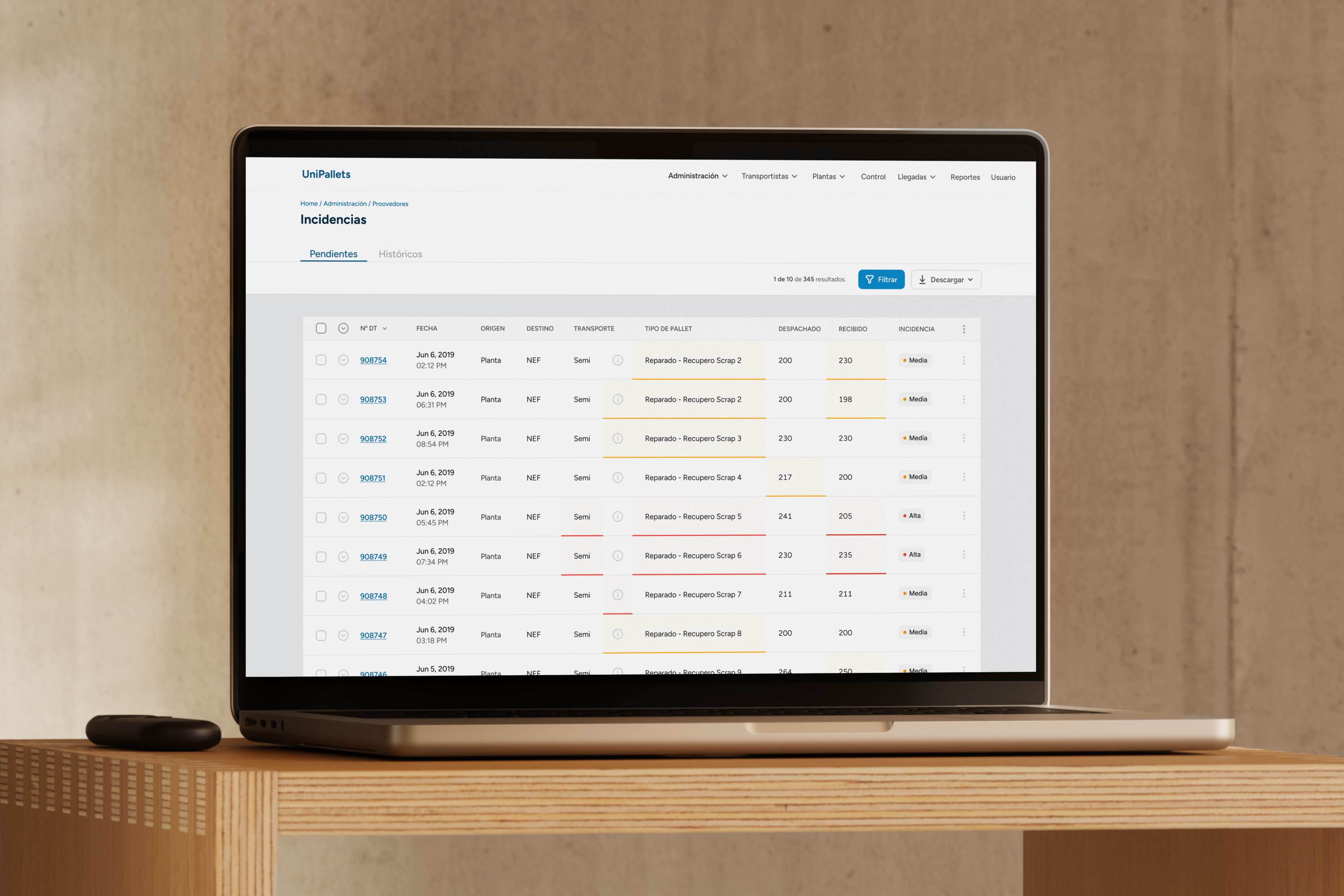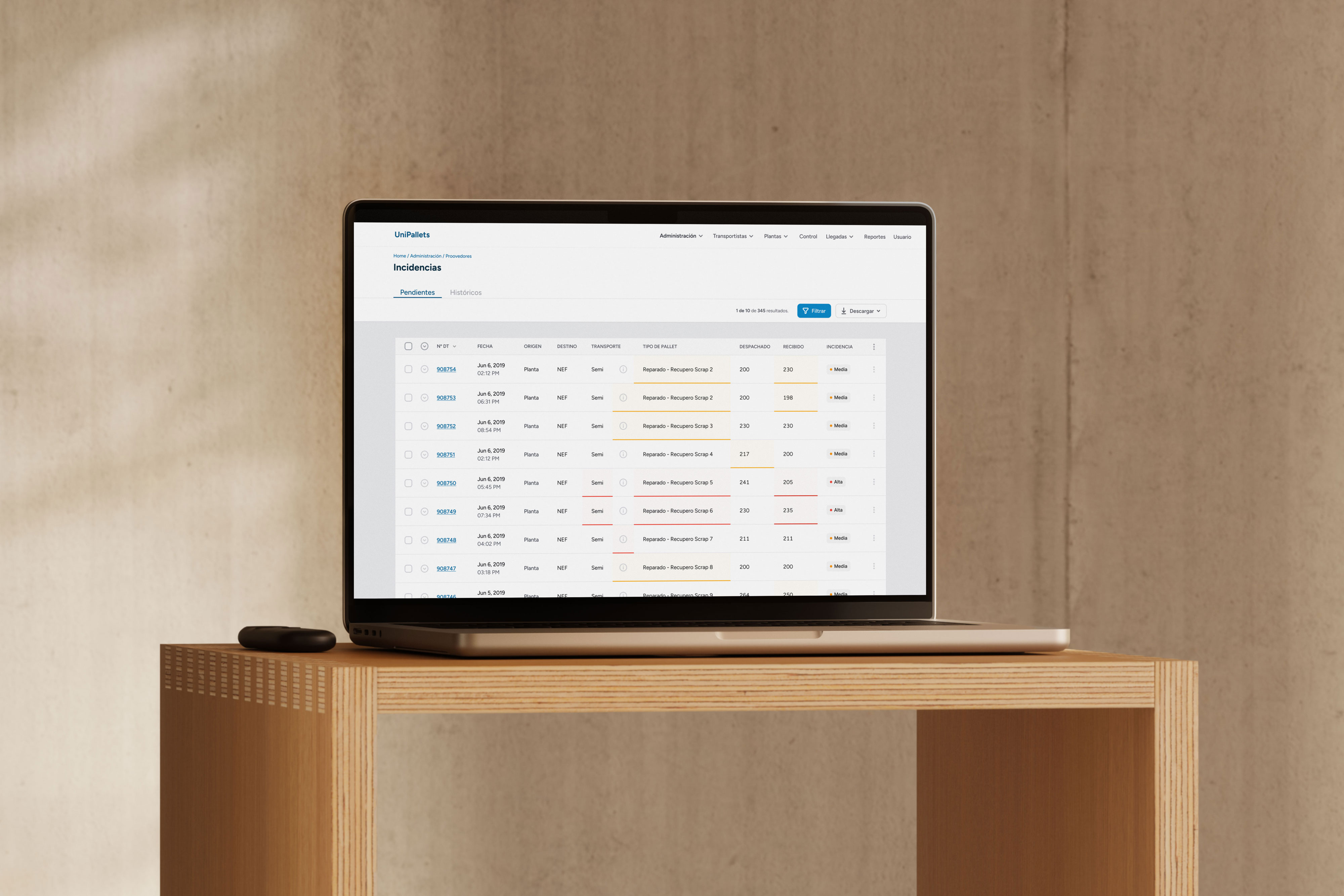 With Argentina's inflation changing month to month, pallet prices needed to stay current. We made tariffs editable per pallet type and customizable per supplier, so the platform reflected real costs at all times.