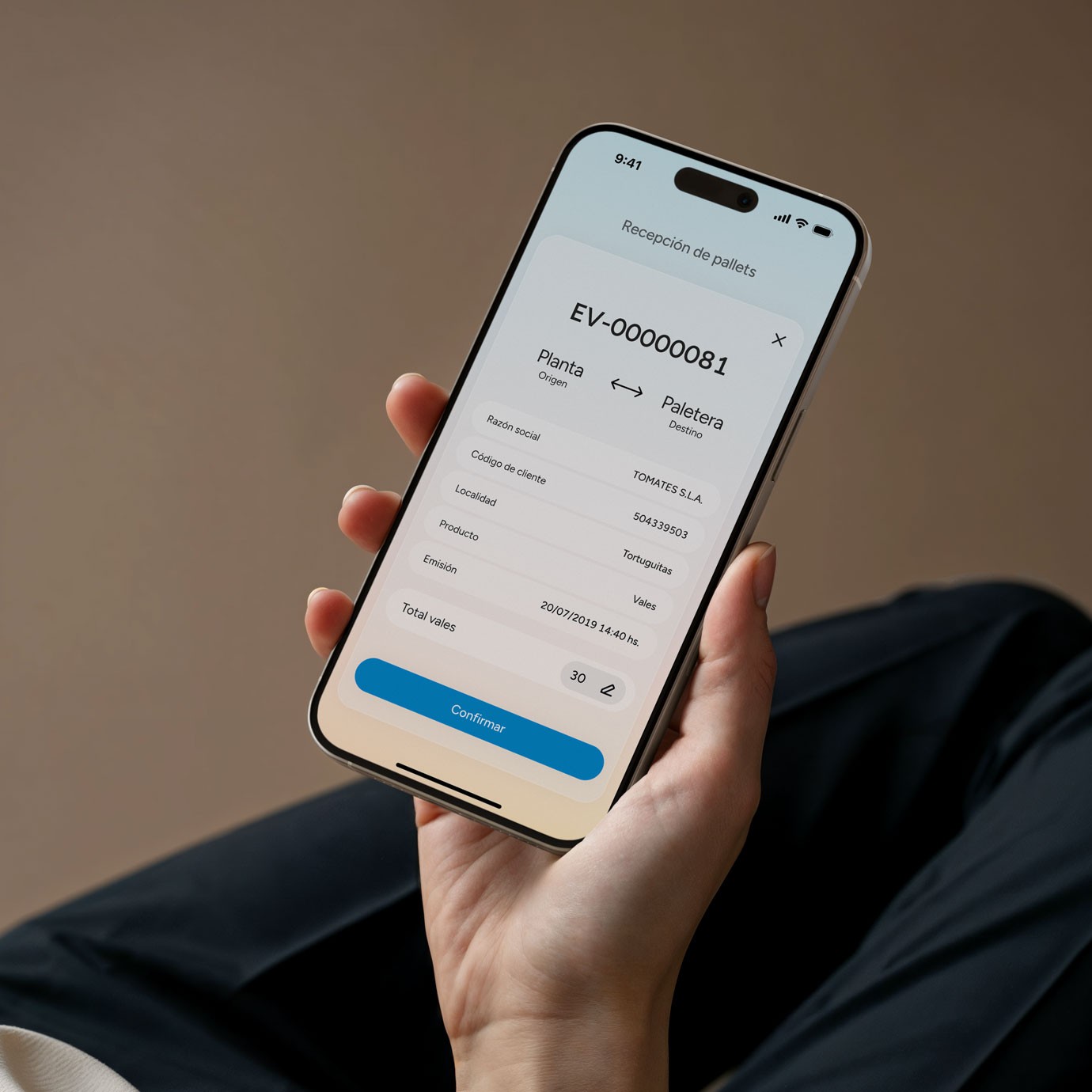The platform integrated with SAP, unifying processes that had previously lived across paper documents, phone calls, and disconnected systems. The interface tracks pallets from dispatch through return, giving admin staff clear visibility of ownership and outstanding debt at any point in the cycle.